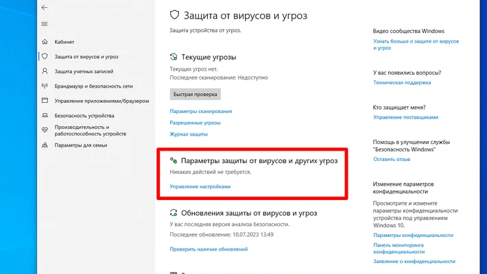 Шаг 1. Открываем Защитник Windows и выбираем пункт «Защита от вирусов».