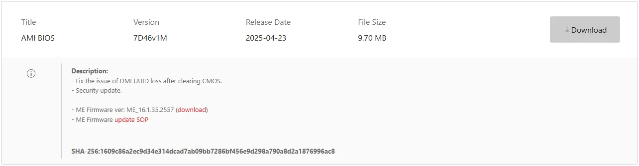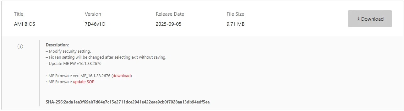 – Вот эта версия bios с багом – 7D46v1O она от 2025-09-05.